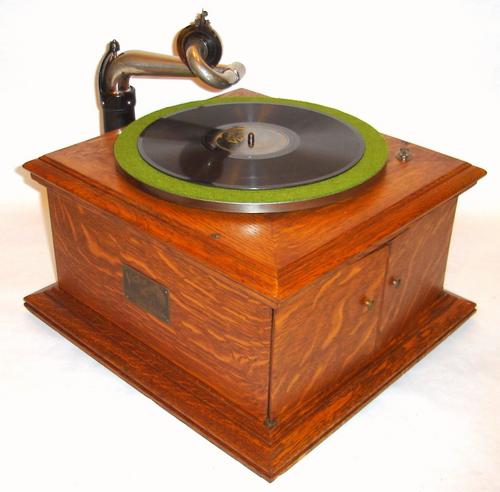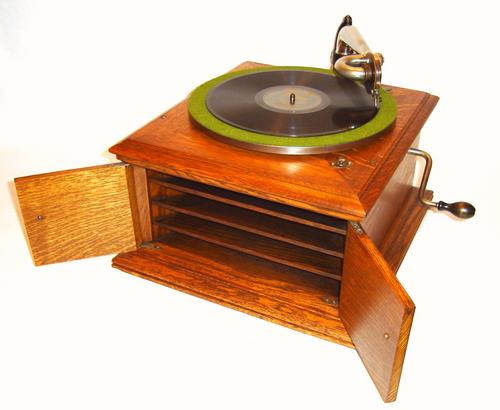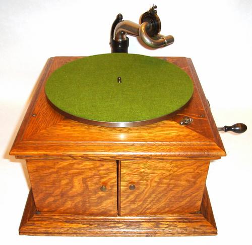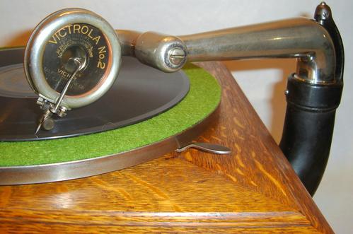 ![]() The gorgeous tiger oak cabinet retains its original factory finish, which has been recently cleaned and has a great luster. ![]() The nickel plated hardware is in nice condition and has been carefully polished. The only non-original item on this Victor is the turntable felt, which has been replaced with historically accurate, olive green 100% wool felt.